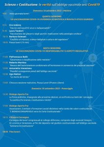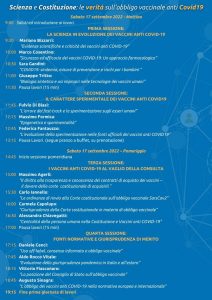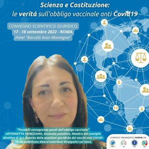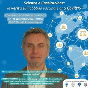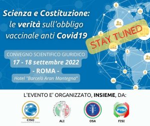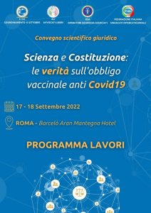 Convegno “Scienza e Costituzione: le verità sull’obbligo vaccinale anti Covid19” tenutosi a Roma il 17 e 18 settembre 2022 ed organizzato da Avvocati Liberi (ALI), Federazione Italiana Sindacati Intercategoriali (FISI), Coordinamento 15 Ottobre (C15O) ed Operatori Sicurezza Associati (OSA).