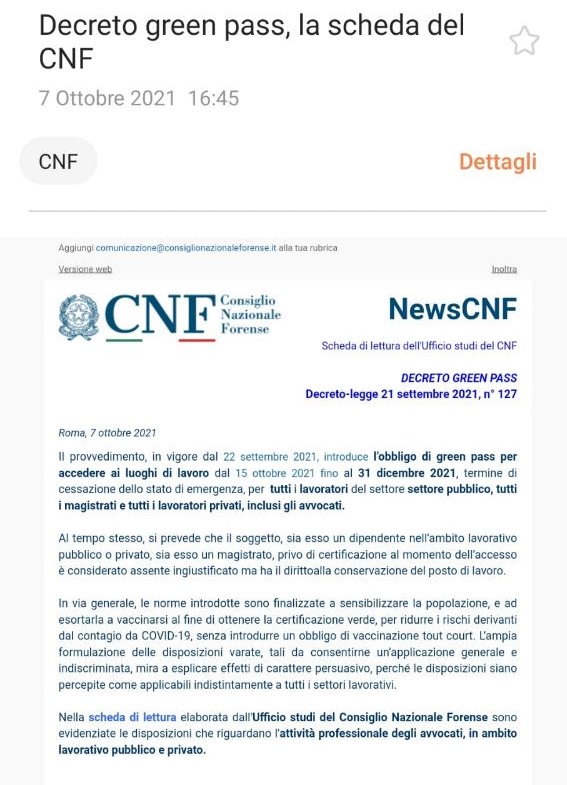 2021/2022 – ALI Vs ISITUZIONI FORENSI (CNF, COA & CF) CONTRO TERAPIE GENICHE ANTI COVID E USO GREEN PASS AVVOCATI